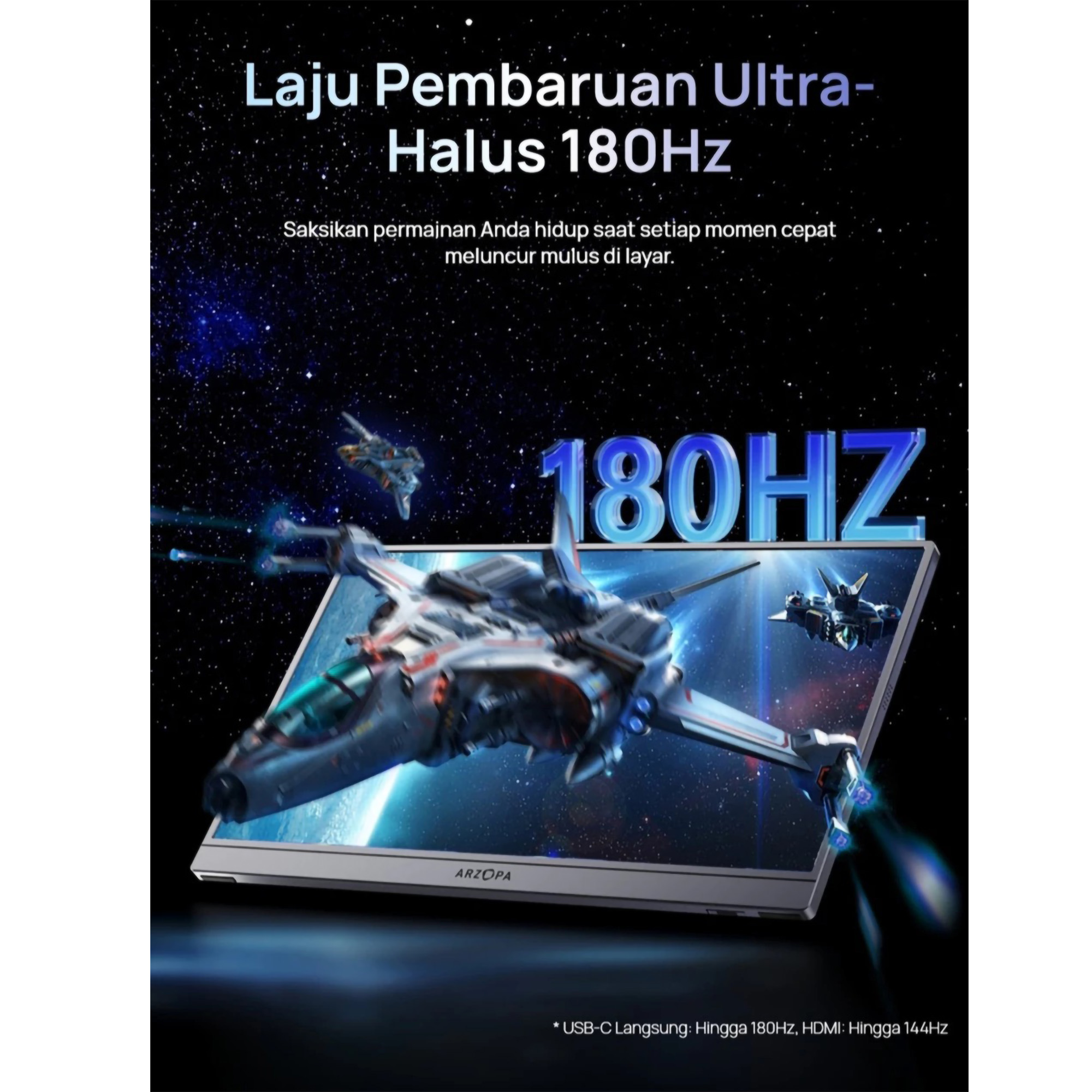 Namun, bintang utamanya adalah refresh rate super cepat 180 Hz yang dikombinasikan dengan dukungan AMD FreeSync. Fitur ini secara signifikan mengurangi motion blur dan screen tearing, memberikan pengalaman visual yang sangat mulus, terutama saat bermain game atau mengedit video. Untuk konektivitas, ARZOPA Z3FC dilengkapi dengan dua port USB Type-C 3.1 yang berfungsi penuh (mendukung daya, audio, dan video hingga 180Hz) dan satu port Mini-HDMI 2.0 (mendukung audio dan video hingga 144Hz). Ini membuatnya sangat serbaguna dan kompatibel dengan berbagai perangkat, mulai dari laptop, smartphone, hingga konsol game seperti PS5, Xbox, atau Steam Deck.