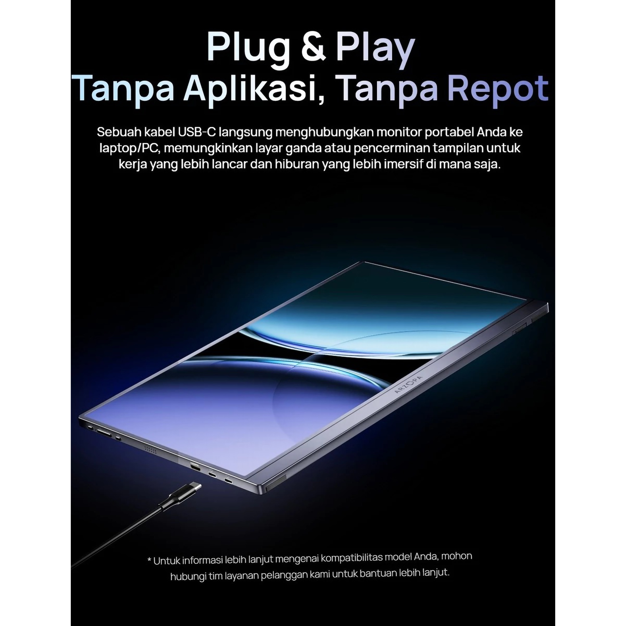 - Tanpa Baterai Internal: Monitor ini membutuhkan daya eksternal, baik dari perangkat yang terhubung melalui USB-C atau sumber daya USB-C terpisah.