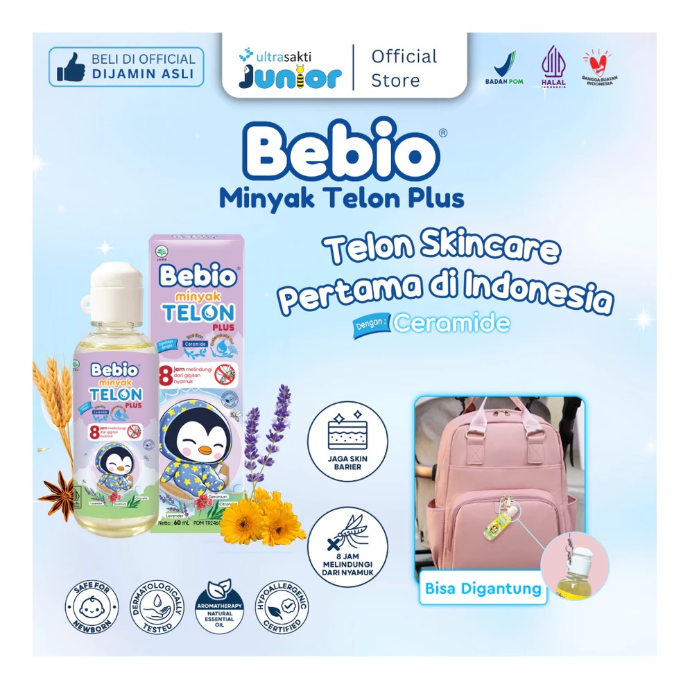 Bebio Minyak Telon Plus adalah produk dari Ultra Sakti yang dikemas dalam botol plastik berukuran 60 ml, dengan Nomor Izin Edar (NIE) TR246041011. Ini bukan sekadar minyak telon biasa, melainkan diklaim sebagai minyak telon pertama di Indonesia yang diperkaya dengan Ceramide.