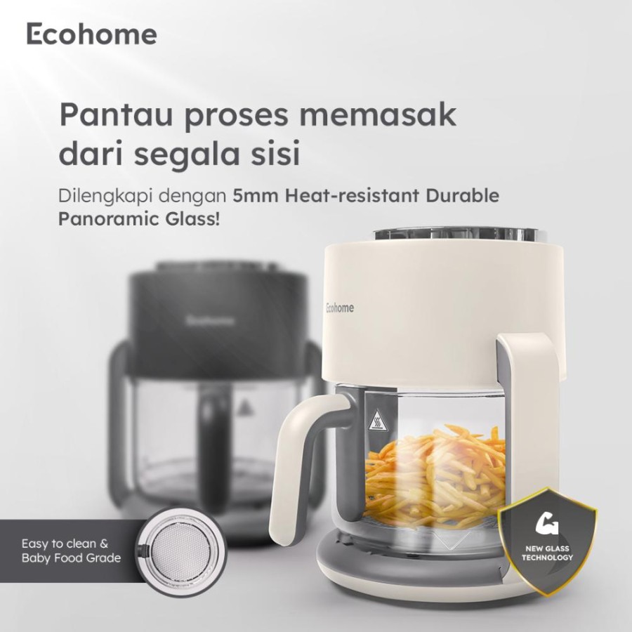 Desainnya yang elegan dengan pilihan warna Pearl White dan Black juga membuat Ecohome EAF-777 tampil menawan di dapur. Bagian-bagian yang dapat dilepas juga didesain agar mudah dibersihkan, bahkan materialnya baby food grade, menambah rasa aman saat digunakan. Sistem keamanan seperti Overheat System Removal dan Safety Lock System juga memberikan ketenangan pikiran saat menggunakannya.