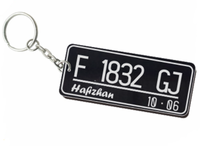 Gantungan kunci model plat nomer akrilik grafir
