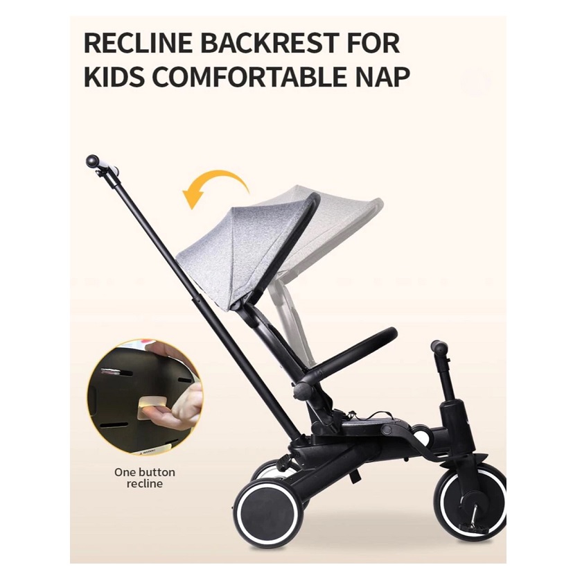 Dari segi adaptabilitas, tricyle ini didesain untuk anak usia 10 bulan hingga 5 tahun, atau dengan berat maksimal 20 kg. Ini mendukung berbagai "mode" penggunaan, seperti Parent mode (10-18 bulan), Growth Mode (18-24 bulan), dan Kid mode (24-30 bulan ke atas). Beberapa varian bahkan disebutkan memiliki Rear Facing Mode untuk interaksi yang lebih dekat dengan orang tua di usia awal. Dengan berat produk sekitar 8.2 kg hingga 8.8 kg, tricyle ini terasa kokoh namun tetap ringan untuk dipindahkan. Dimensi terlipatnya pun sangat kompak, sekitar 34x34x62cm atau 28cmx33cmx63cm, menjadikannya pilihan ideal untuk mobilitas tinggi.