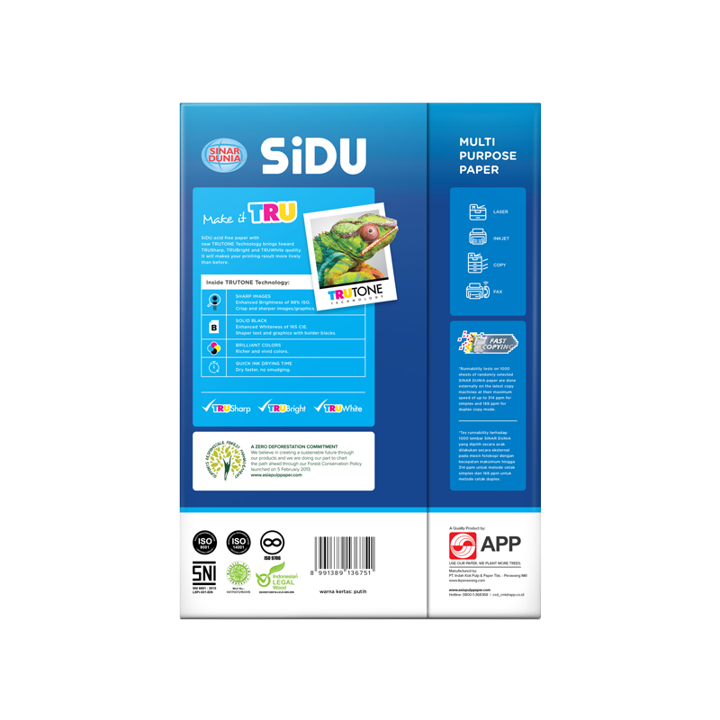 Salah satu fitur teknis yang patut diacungi jempol adalah penggunaan Teknologi TRUTONE pada kertas SiDU. Teknologi ini diklaim mampu memberikan kualitas gambar dan cetak yang maksimal, serta reproduksi garis yang superior, menjamin ketajaman dan kontras warna yang optimum. Permukaan kertasnya halus dan warnanya putih cerah, menjadi fondasi ideal untuk hasil cetak yang tajam dan kontras warna yang maksimal.