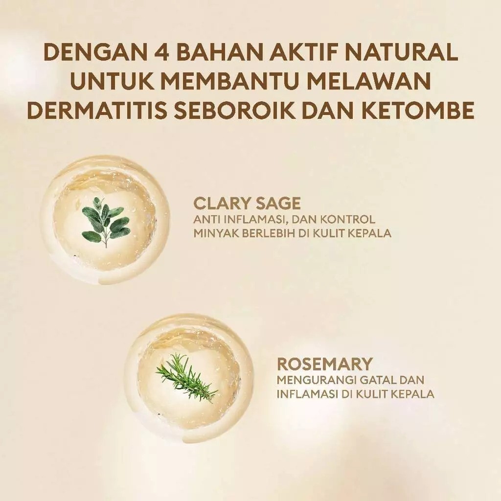 Kemudian, hadir pula kompleks Dandelix Pro yang merupakan perpaduan Rosemary, Watercress, dan Sage. Secara spesifik, Clary Sage dikenal sebagai anti-inflamasi alami untuk menyeimbangkan minyak berlebih, Rosemary efektif meredakan gatal dan kemerahan, sementara Watercress membantu melawan jamur dan bakteri penyebab ketombe. Kombinasi ini terbukti secara in vitro mampu mengurangi ketombe dan menenangkan kulit kepala.