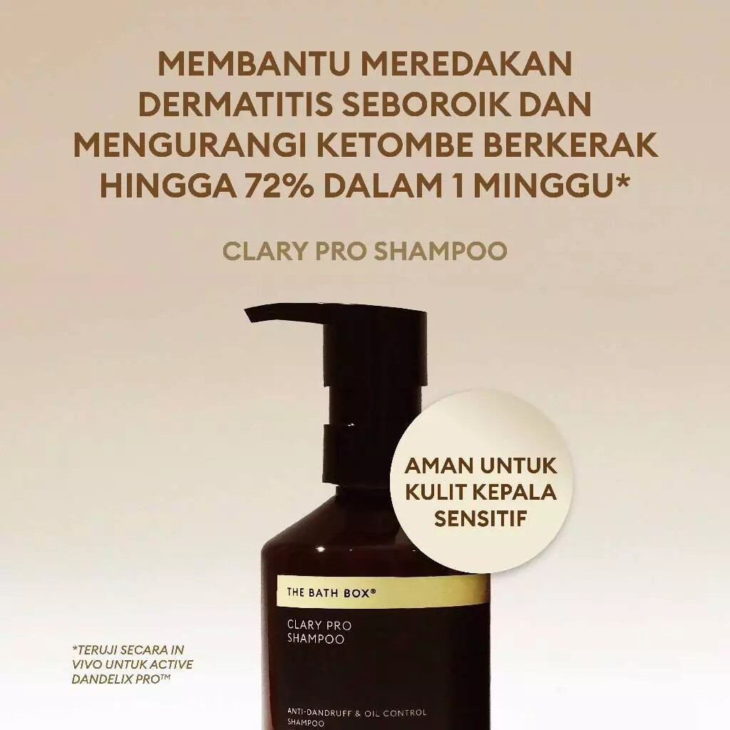 Masalah kulit kepala seperti ketombe, kulit kepala berminyak, gatal, hingga dermatitis seboroik memang biasanya sulit diatasi. Banyak sampo di pasaran yang menjanjikan solusi instan, namun tak jarang justru mengandung sulfat (SLS) yang bisa membuat kulit kepala semakin kering dan iritasi. Di sinilah THE BATH BOX® Clary Pro Haircare hadir sebagai jawaban. Produk ini diformulasikan khusus untuk secara lembut namun efektif mengurangi ketombe, kulit kepala terkelupas, serta gejala dermatitis seboroik. Inilah yang membuatnya sangat layak untuk dilirik oleh Anda yang mendambakan kulit kepala sehat dan rambut bebas masalah.