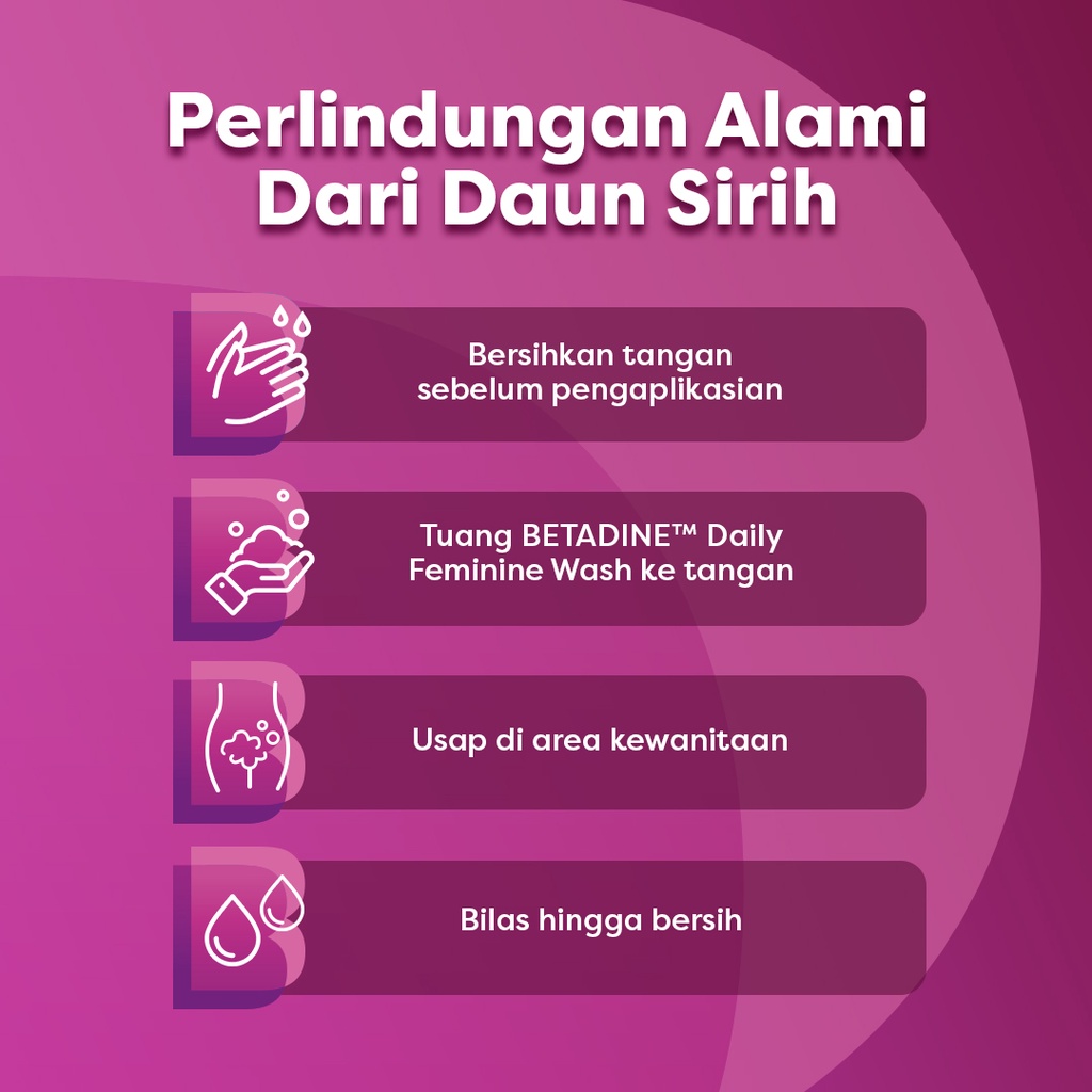 | Produk | BETADINE™ Daily Feminine Wash Natural – Daun Sirih Radiance Blossom |