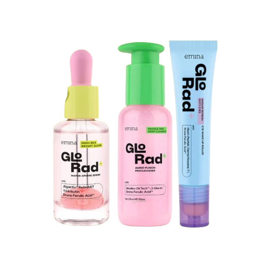 Pertama, ada Emina GloRad+ High-Res Bright Glow Water-Sphere Serum. Serum inovatif ini menggabungkan ringannya air dengan kekayaan minyak dalam bentuk bola-bola unik yang akan aktif saat dikocok sebelum digunakan. Serum ini diperkaya dengan 10x brightening active ingredients, termasuk teknologi canggih Drone-FE Tech™ yang merupakan encapsulated Ferulic Acid. Teknologi ini diklaim mampu mengantarkan zat aktif hingga ke lapisan terdalam melanosit, menargetkan lapisan epidermis kulit remaja untuk memberikan 10x Ultra HD Glow. Tak hanya itu, serum ini juga mengandung RetinArt, bio-retinol generasi berikutnya yang berfungsi sebagai alternatif retinol dengan risiko iritasi minimal. Ditambah lagi, ada TXArbutin Complex, perpaduan Tranexamic Acid dan Alpha Arbutin yang bekerja efektif menyamarkan bintik hitam dan hiperpigmentasi. Beberapa kandungan lain yang turut mendukung adalah Niacinamide, Hyaluronic Acid, Vitamin E, dan Alpha-Arbutin.