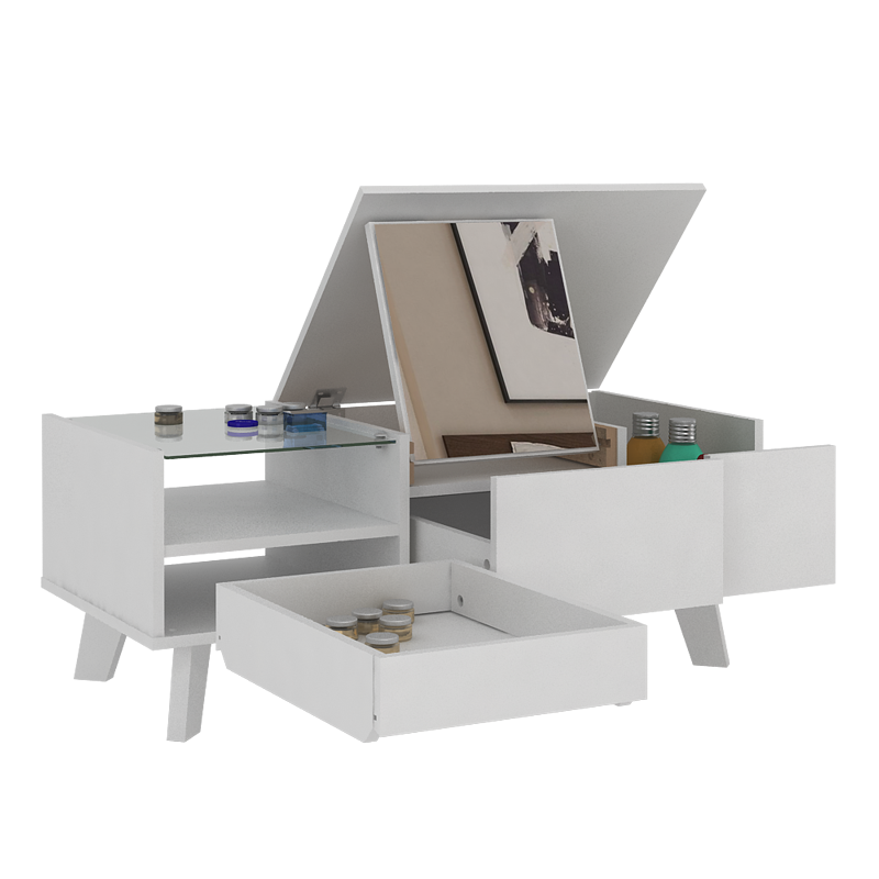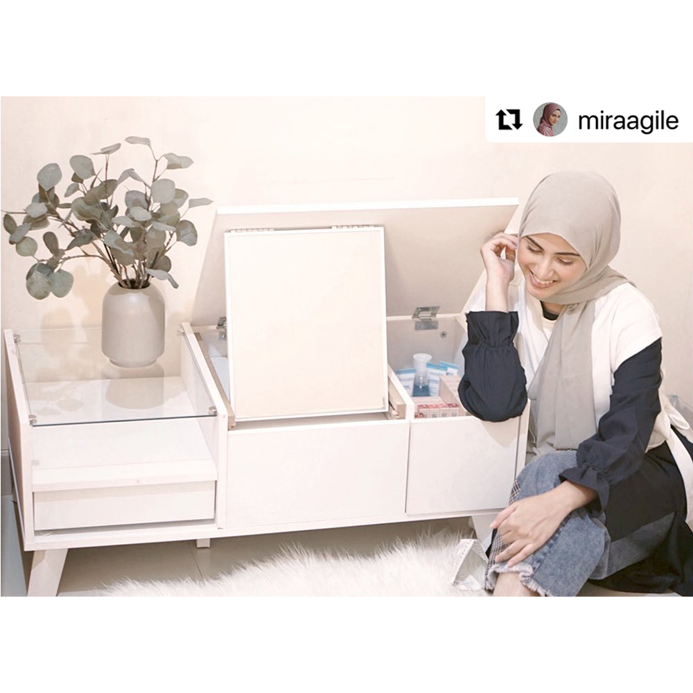 Ini dia bagian yang paling menarik dari Kesho DS: multifungsinya. Dari hasil penelusuran kami, meja ini sungguh serbaguna, bahkan sering disebut juga sebagai meja rias multifungsi. Ketika tertutup, tampilannya memang seperti meja sofa minimalis biasa. Namun, begitu Anda mulai menjelajahi setiap sisinya, Anda akan menemukan banyak space penyimpanan yang tersembunyi.