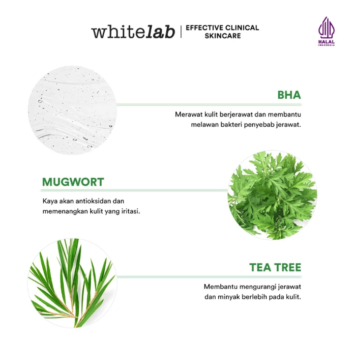- Formula Efektif: Kombinasi BHA, Mugwort, dan Tea Tree sangat powerful dalam merawat jerawat, menenangkan kulit, dan mengontrol minyak.
