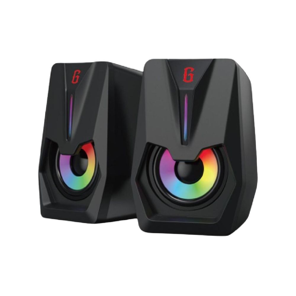 Gamen GS2 juga memiliki rasio Signal-to-Noise (SNR) ≥70dB, yang berarti suara yang dihasilkan akan minim gangguan kebisingan. Untuk konektivitas, speaker ini sangat praktis karena menggunakan double port input: USB 5V/1A untuk daya dan jack audio 3.5mm untuk sinyal suara, membuatnya kompatibel dengan berbagai perangkat seperti laptop, PC, dan bahkan ponsel. Desainnya sendiri mengusung gaya gaming yang futuristik, dengan ukuran ringkas 129mm x 85mm x 83mm per unit speaker, serta bobot sekitar 400 gram. Beberapa sumber juga menyebutkan beratnya sekitar 500g.