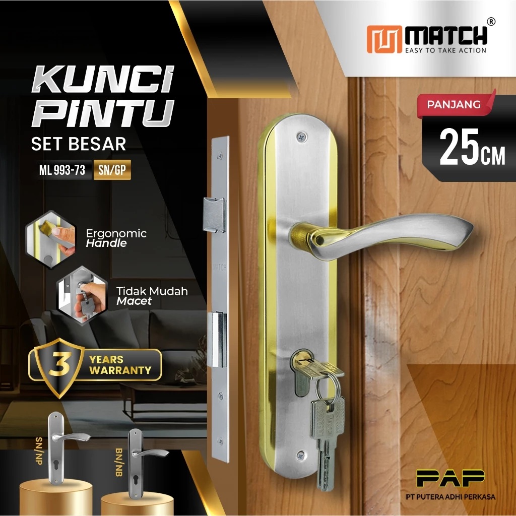 Mari kita bedah lebih dalam apa saja yang ditawarkan oleh Match Handle Pintu Minimalis Set Besar 25cm ML-73 ini. Berdasarkan informasi yang kami temukan, handle pintu ini dirancang dengan dimensi yang cukup signifikan. Untuk bagian platnya, ukurannya adalah 25cm x 5.5cm, dengan jarak gagang ke lubang silinder sekitar 6cm. Sementara itu, bodi kuncinya memiliki ukuran 17cm x 6.5cm, dan plat bodi kunci berukuran 24cm x 2cm, dengan jarak lidah ke slot 6cm. Ukuran 25cm ini memang menjadi daya tarik utamanya, memberikan kesan kokoh dan proporsional, terutama untuk pintu-pintu berukuran standar hingga besar.