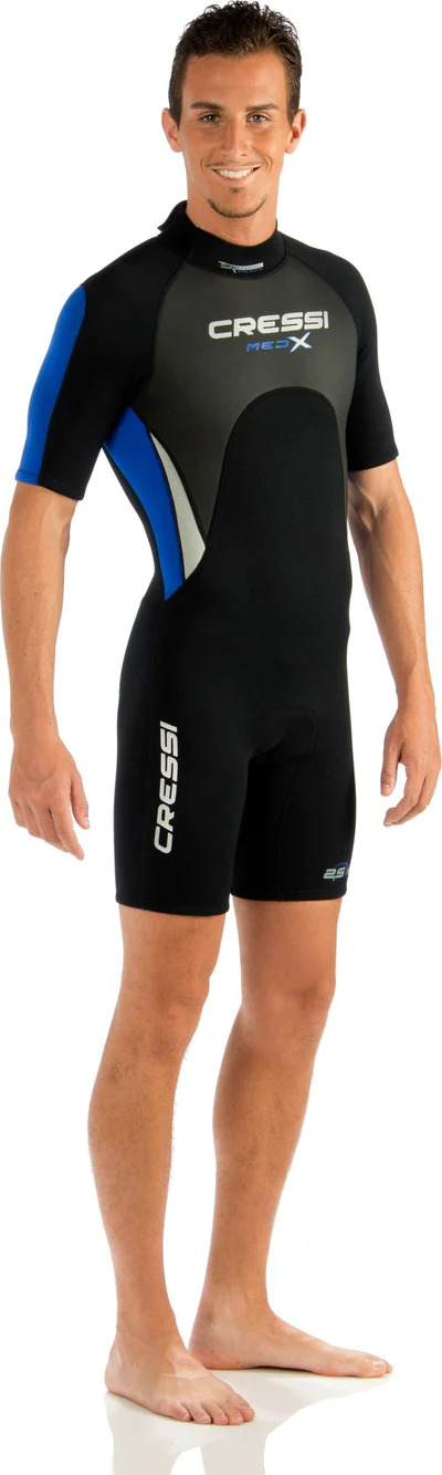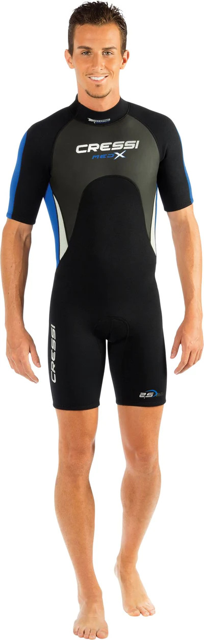 Cressi Med X Shorty Man adalah versi terbaru dan penyempurnaan dari springsuit Med X yang sudah dikenal luas. Dibuat dari material neoprene nylon-2 setebal 2.5mm, atau sering juga disebut double-lined high stretch ultra span Neoprene, wetsuit pendek ini menawarkan kombinasi fleksibilitas dan durabilitas yang apik. Ketebalan 2.5mm ini sangat ideal untuk suhu air 22 derajat Celcius ke atas, menjadikannya pilihan sempurna untuk perairan tropis yang hangat.