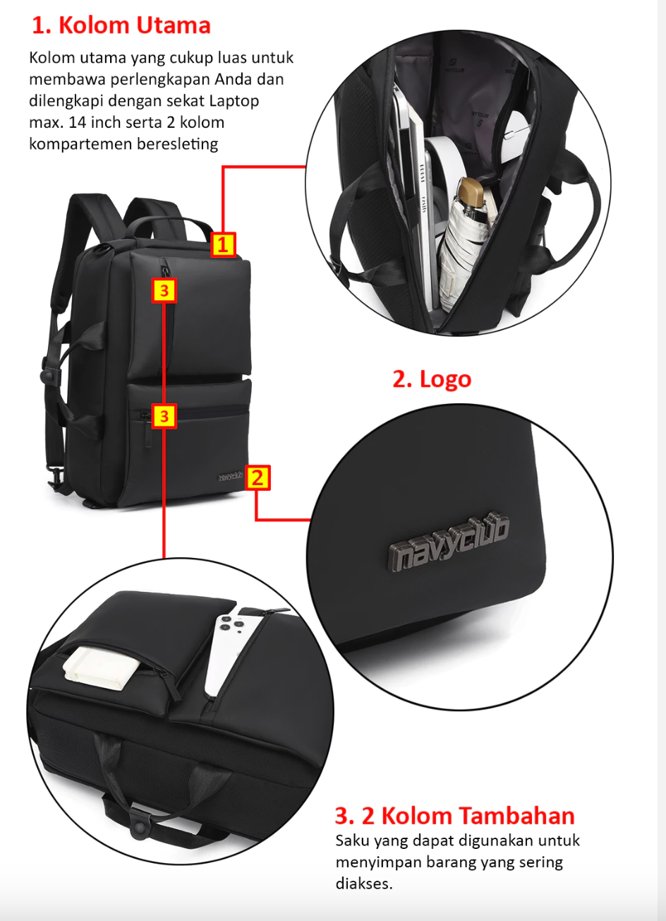 | Produk | Navy Club Tas Ransel Laptop 3 in 1 HEI 859 |