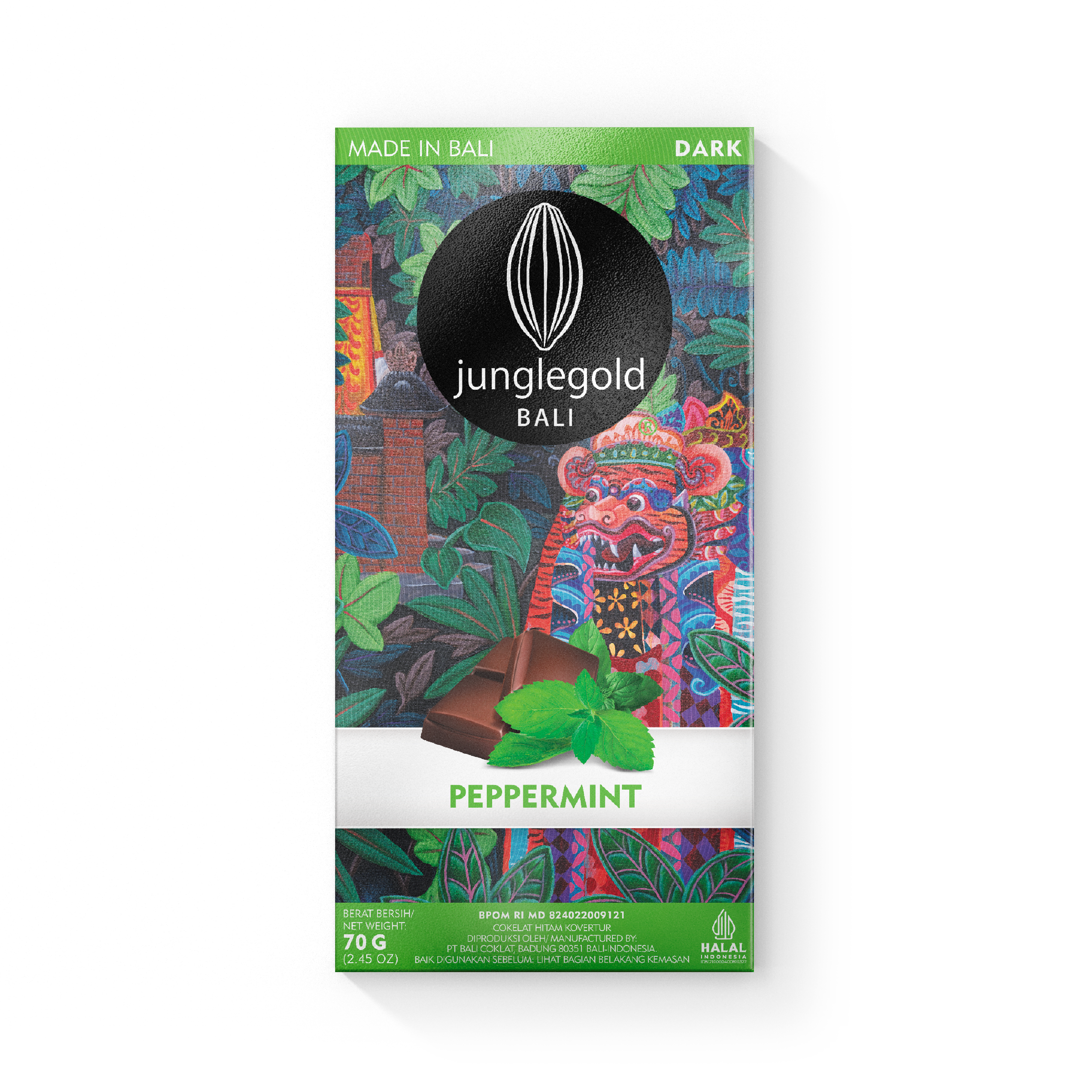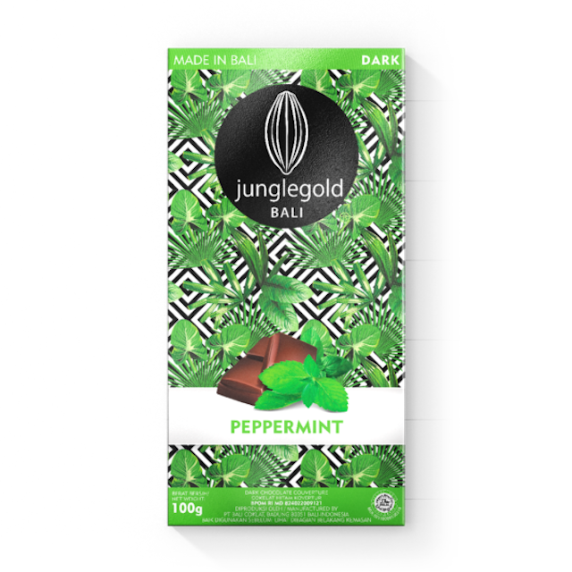 Cokelat Peppermint ini dibuat dengan kakao mass 64% dari Indonesia, dipadukan dengan gula kelapa lokal yang rendah glikemik, lesitin kedelai, dan minyak peppermint alami. Penggunaan gula kelapa ini menjadi pilihan yang lebih sehat dibandingkan gula rafinasi biasa. Junglegold juga sangat mengedepankan praktik pertanian yang berkelanjutan dan etis, dengan sumber kakao lokal dari petani skala kecil di seluruh Indonesia. Mereka bahkan bekerja langsung dengan petani untuk memastikan kualitas biji kakao terbaik dan memberikan harga premium, serta dukungan teknis. Proses pembuatan cokelat mereka yang "bean-to-bar" (dari biji hingga batangan) dapat dilihat langsung di pabrik mereka di Bali, mulai dari pemanggangan hingga pencetakan.