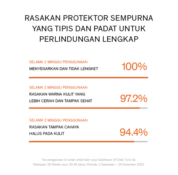 Sulwhasoo UV Daily Tone Up Sunscreen hadir dengan klaim perlindungan spektrum luas SPF 50+/PA++++, yang berarti ia efektif melindungi kulit dari paparan UVA dan UVB secara maksimal. Lebih dari itu, sunscreen ini menawarkan "5 Layer Barrier" atau perlindungan 5 lapis terhadap polusi perkotaan, termasuk sinar UVA, UVB, sinar inframerah, blue light, dan debu halus. Sebuah perisai yang sangat dibutuhkan di tengah gaya hidup modern kita.